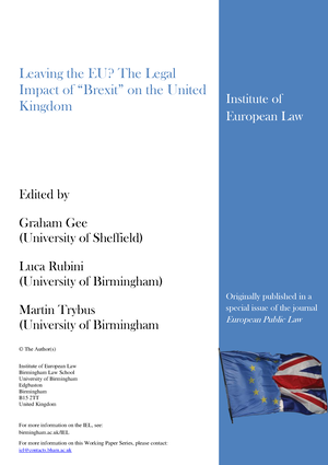 2016. (edited, with Graham Gee and Martin Trybus) Leaving the EU? The Legal Impact of Brexit on the United Kingdom, Institute of European Law, University of Birmingham , also published as special issue in (2016) European Public Law, March issue, 51-170